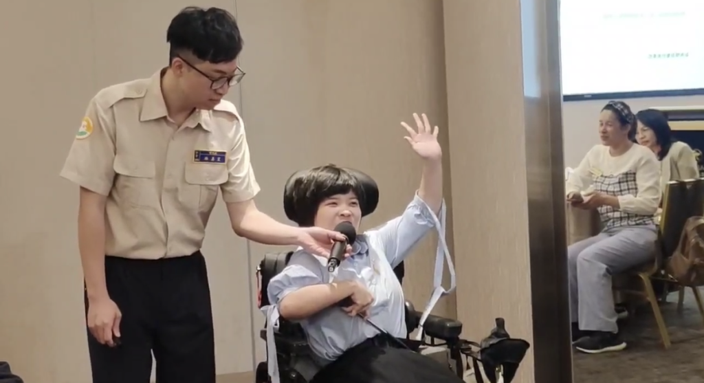 今年29歲的翁彥如以「從我可以嗎?」到「做就對了」為題,分享她從被扶持到照亮他人的生命轉折。她說自幼罹患腦性麻痺伴隨先天性脊椎側彎,童年是在無數針灸、開刀與住院中度過。14歲那年病情惡化,醫師曾告知家人,生命恐僅剩三個月;但在家人、醫療團隊與師生的支持下,她挺過了生死關卡。她在演講中動容表示:「是愛讓我多活了15年以上,也讓我知道,活下來不是偶然,而是有使命。」