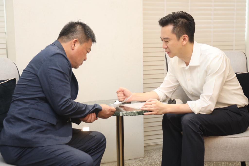 ▲竹北市長鄭朝方(右)和竹北市民代表會主席林啟賢共商竹北市預算。(圖/竹北市公所提供)