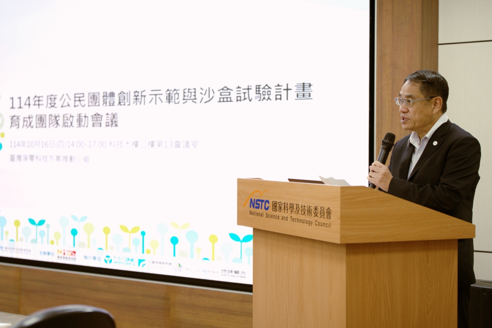 國科會林法正副主委致詞時指出,臺灣邁向2050淨零轉型的進程,不僅是一項科技研發或產業轉型的工程,更是一場需要全體社會共同投入的長期學習與集體行動歷程,「國科會推動沙盒計畫的核心精神,在於讓民間成為創新的主體,從生活場域出發,以公民自發的實驗與實踐,探索可行且具擴散潛力的淨零解方。」他並進一步表示,本次啟動的育成機制,將透過系統化的輔導與支持,協助具潛力之團隊補足執行量能,建立符合科學與政策需求的方法學架構與量化評估指標,進而深化原始構想、推動場域實證,讓公民淨零行動能夠持續深化並擴散至更多社區與產業場域。