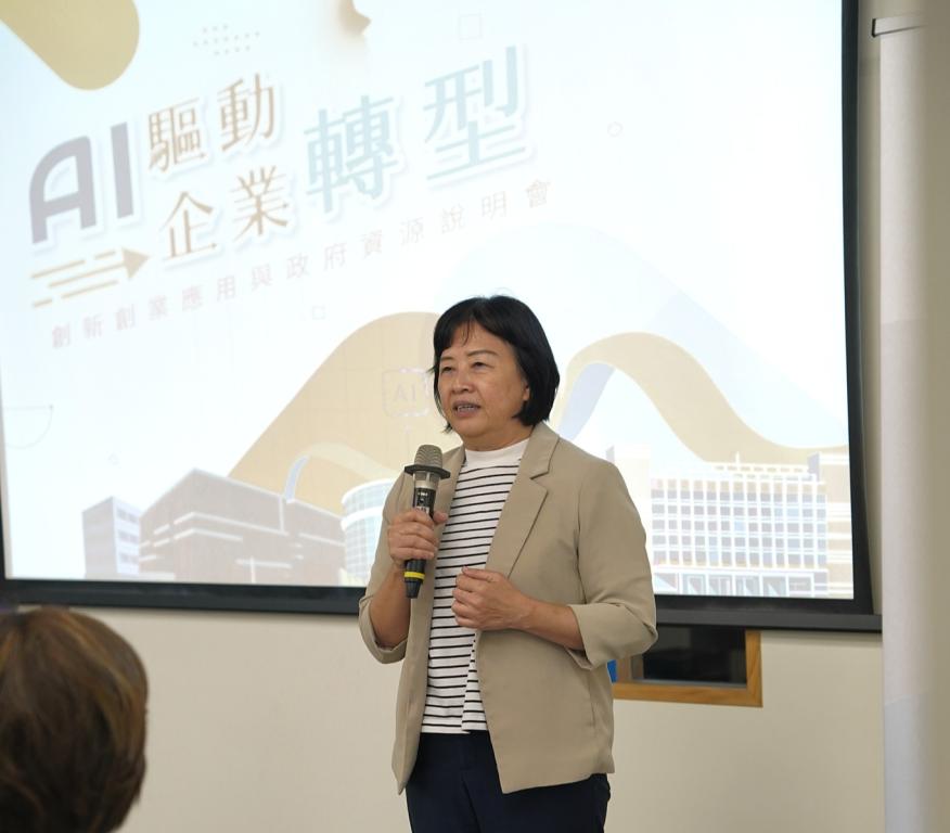 本次活動除邀請財團法人人工智慧科技基金會溫怡玲執行長進行AI應用趨勢分享,另說明政府補助資源、基地資源介紹及成功輔導案例為核心,協助與會廠商深入了解如何實際導入AI應用,加速數位轉型與創新。