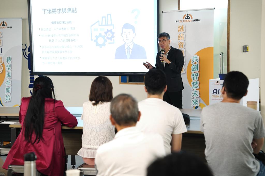 【勁報記者于郁金/南科報導】AI技術應用已成為產業升級必經之路,為協助企業掌握轉型契機,南科AI_ROBOT自造基地於10月21日舉辦「AI驅動企業轉型—創新創業應用與政府資源說明會」,吸引南科園區內外半導體基板、電子零組件、面板、PCB等產業廠商與新創團隊踴躍參與,會場交流熱絡,各產業代表齊聚一堂共同關注AI在製造與創新應用發展。