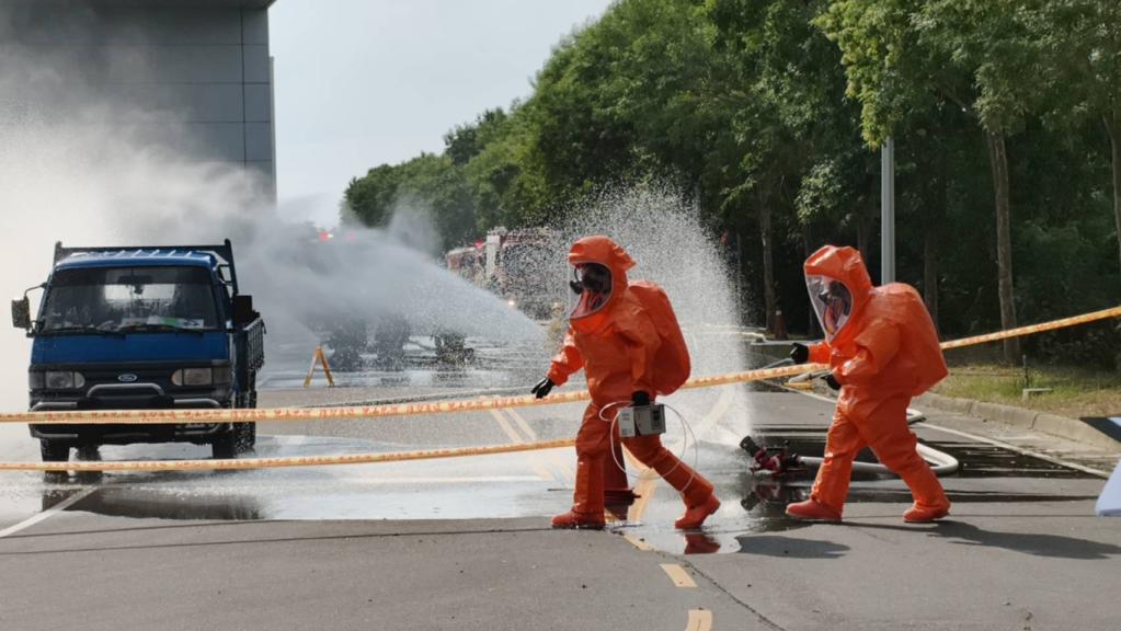 本次演練模擬強震引發高風險化學品洩漏與人員受困等災情;演練分為多個階段,首先由廠區自衛消防編組啟動應變程序,並逐步通報消防局及聯防組織提供支援,進行滅火與傷患救援;隨後,南科應變中心協助進行氣體偵測與災後復原工作,確保災後環境安全並恢復正常運作;此次演練亦邀請園區廠商參與觀摩,提升園區整體緊急應變能力。