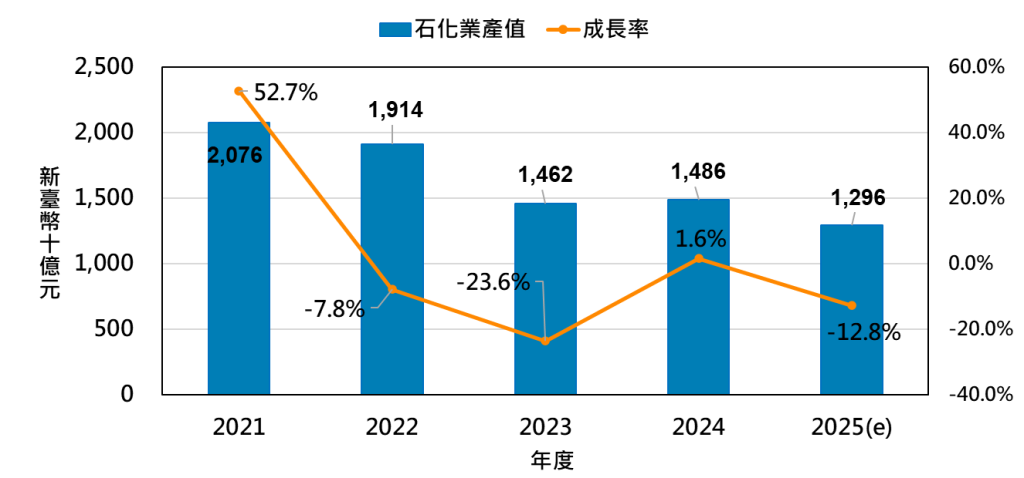▲臺灣石化業產值趨勢。【資料來源/工研院產科國際所、經濟部ITIS計畫(2025/10)】