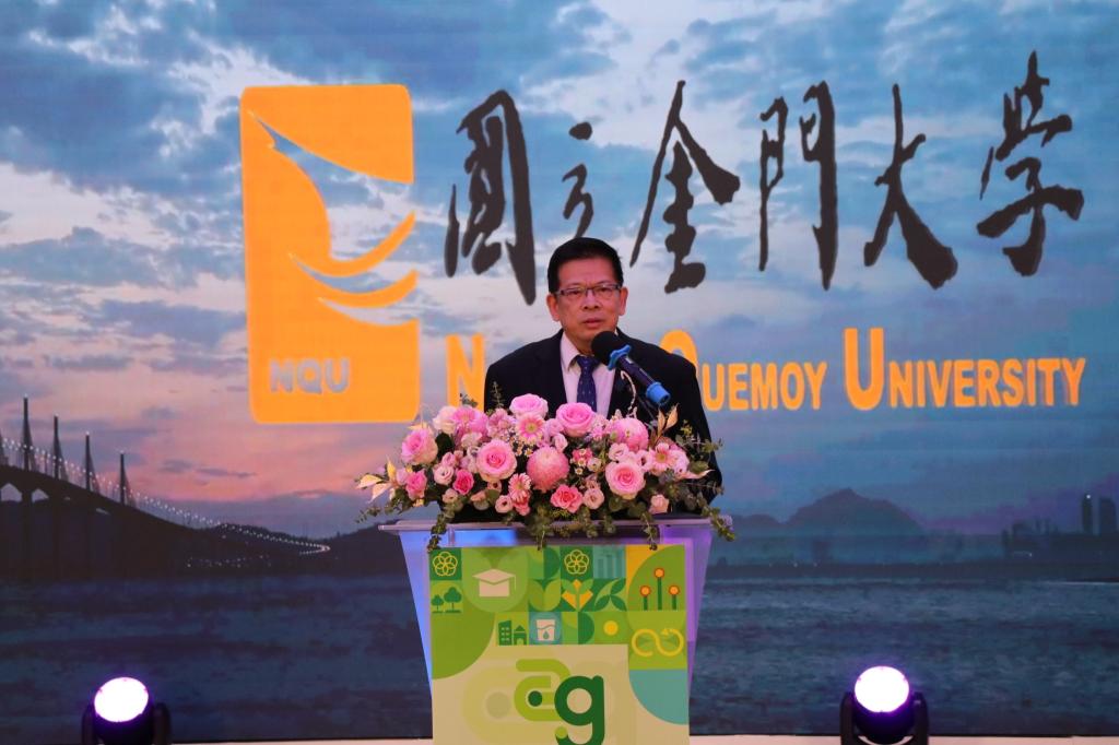 金門縣政府張瑞心秘書長致詞轉達來自縣長陳福海及縣府對金大支持並表示,金門大學自創校以來,深耕在地,為地方智庫與人才搖籃。不僅與縣政府合作,落實ESG,並結合企業設立研究中心,推動特色植物研發;除此之外,更連續4年承辦新南向菁英培育,讓世界看見金門,也讓金門走向世界,更祝福金門大學校運昌隆、再創佳績。