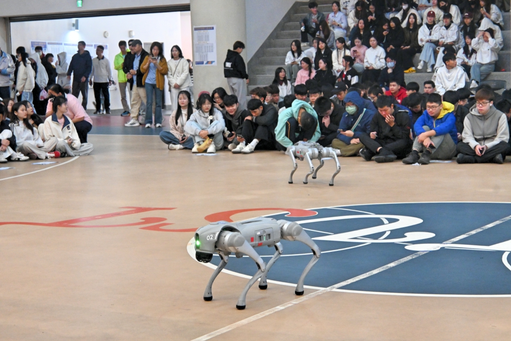 ▲敏實科大五週年校慶活動現場,校方特別安排機器狗活靈活現的精彩表演。(圖/敏實科大提供)