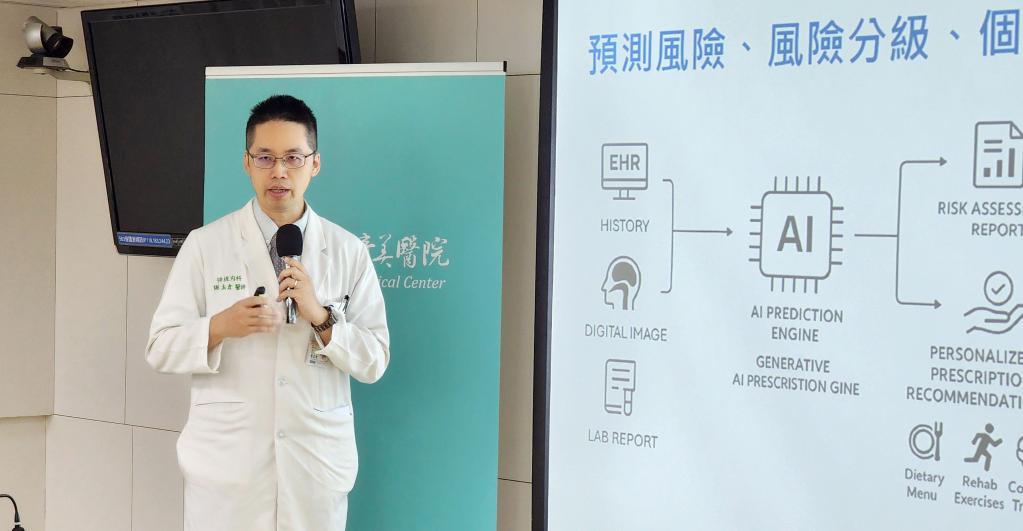 奇美醫院腦中風中心主任謝孟倉指出,許多中風病人面對出院後輕微吞嚥困難和肢體無力時,心裡總是充滿擔憂,而傳統衛教卻往往難以滿足個人需求,是醫療上「未被滿足的痛點」;為此,奇美醫院結合AI打造「DELISH食樂支援平台」,整合病歷、檢驗影像與生理訊號等多模態資料,讓AI如同病人「個人化營養師和復健教練」,精準分析風險與分級,進而產出最適合病人專屬方案,同時透過AI即時運算能力大幅減輕過去需大量人工計算溝通負擔。