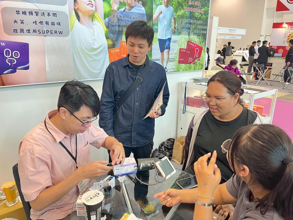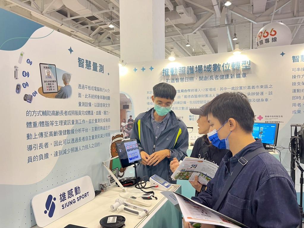 樂活學程進修部一年級林家羽與三年級蘇芳芸邊看邊討論、仔細記錄,直呼像打開一扇通往未來長照世界大門,除了展品,展會中與專業人士互動也是亮點之一,學生們紛紛向廠商提問,從產品功能到市場趨勢,話題熱絡不斷。