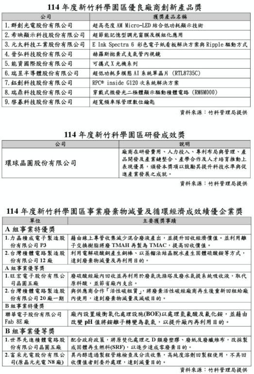 ▲114年度新竹科學園區研發成效獎頒獎。(圖/竹科管理局提供)