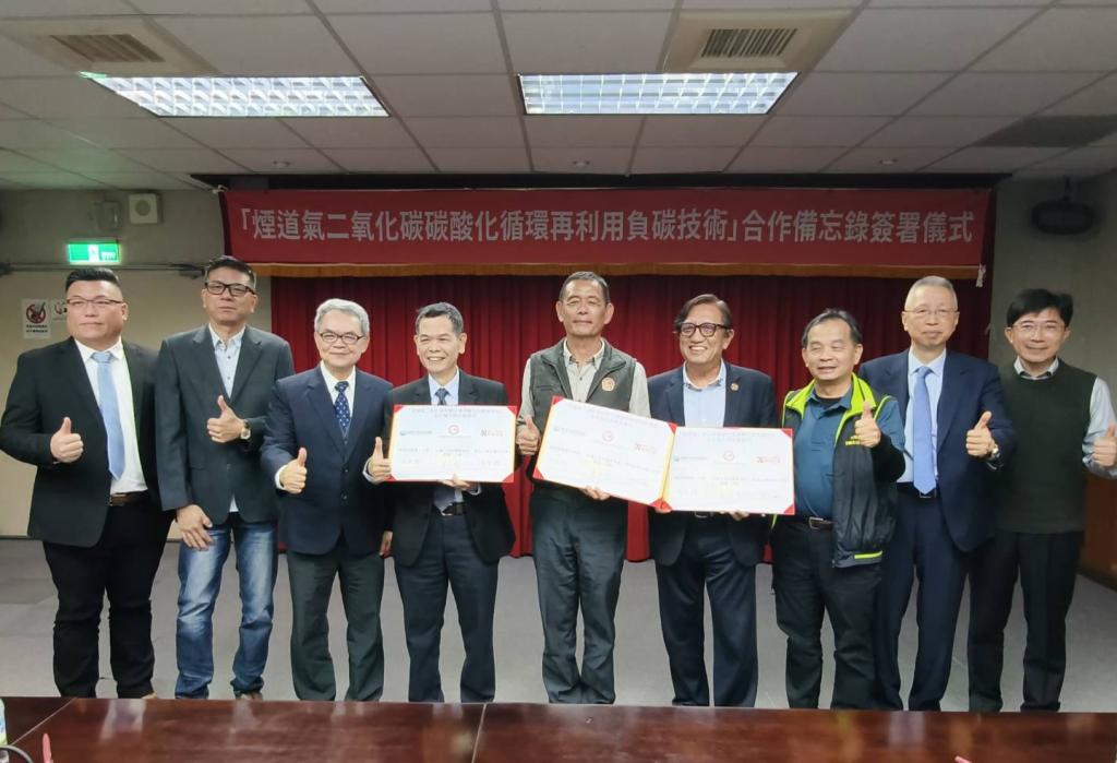 台糖砂糖事業部執行長黃正忠與國原院副院長陳明輝,及耐斯公司總廠長張志毓代表三方簽訂MOU,正式宣布將於虎尾糖廠114/115年製糖期間,由國原院提供自主研發碳捕捉設備與技術,捕捉製糖過程中糖廠煙囪排出煙道氣二氧化碳,並轉化為小蘇打,後續再交由耐斯公司加工製成香皂、洗衣粉等環保清潔用品,具體落實「碳從廢料變資源」理念。