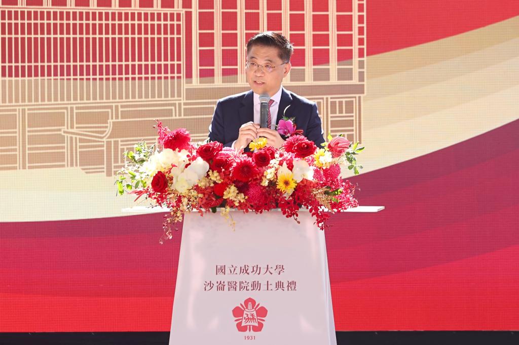 成大沈孟儒校長首先致詞表示,今日是非常榮幸、感動且感恩時刻;這一刻,對成大而言,是邁向新里程重要時刻,也是我們把醫學、科技與社會責任結合在一起具體行動;成大沙崙醫院整體基地約4公頃,未來規劃為一所具備現代化與前瞻性智慧醫院,預計設置664床,設定目標努力在2030年完工;「我們期盼未來不僅服務沙崙科學園區,更成為南關線地區重要醫療支柱,照顧沿線廣大民眾健康」。