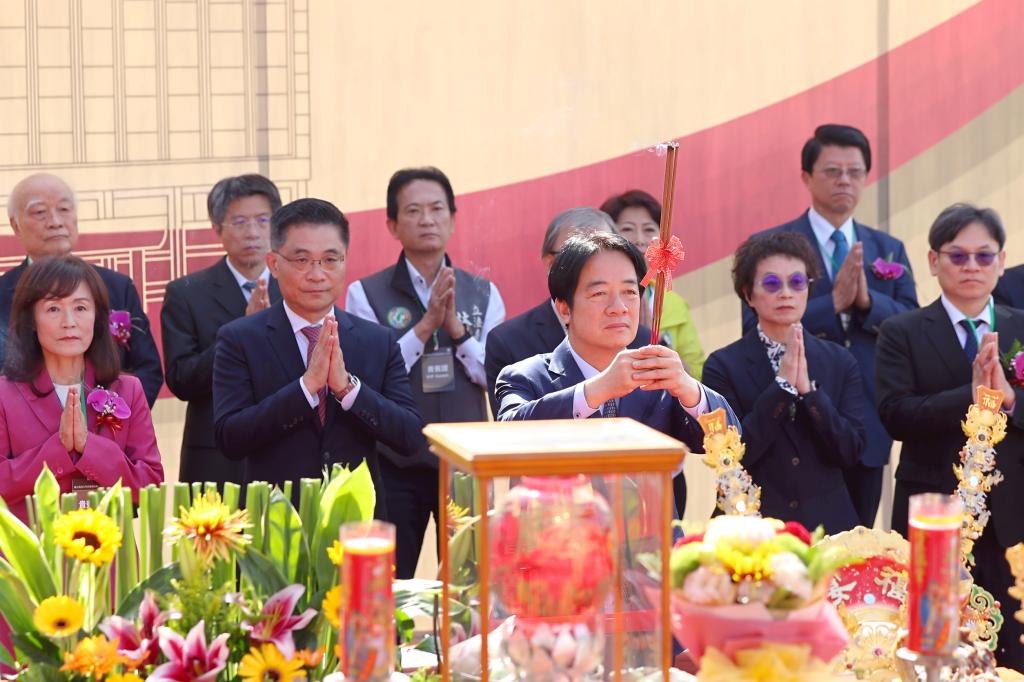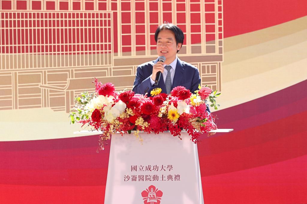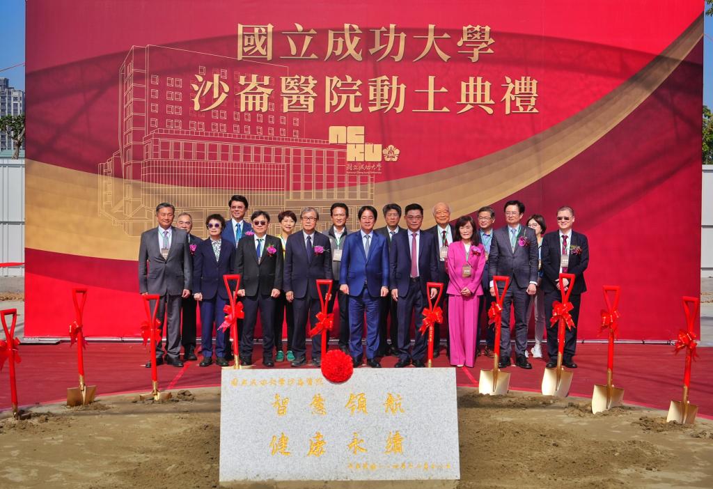 隨後賴總統擔任主祭,進行成大沙崙醫院祈福祭拜及動土儀式,陪祭包括:成大校長沈孟儒、教育部部長鄭英耀、成大前校長蘇慧貞、臺南市副市長趙卿惠、中華民國醫師公會全國聯合會理事長陳相國、國發會主委葉俊顯、成大醫院院長李經維、成大醫學院院長鄭修琦、總統府資政韓良誠、行政院顧問李孟諺、衛福部次長莊人祥、崇偉集團潘谷聲總裁、立委王定宇、林俊憲、陳亭妃、謝龍介、賴惠員一同虔心祝禱成大沙崙醫院開工大吉、平安無礙、順利完工。