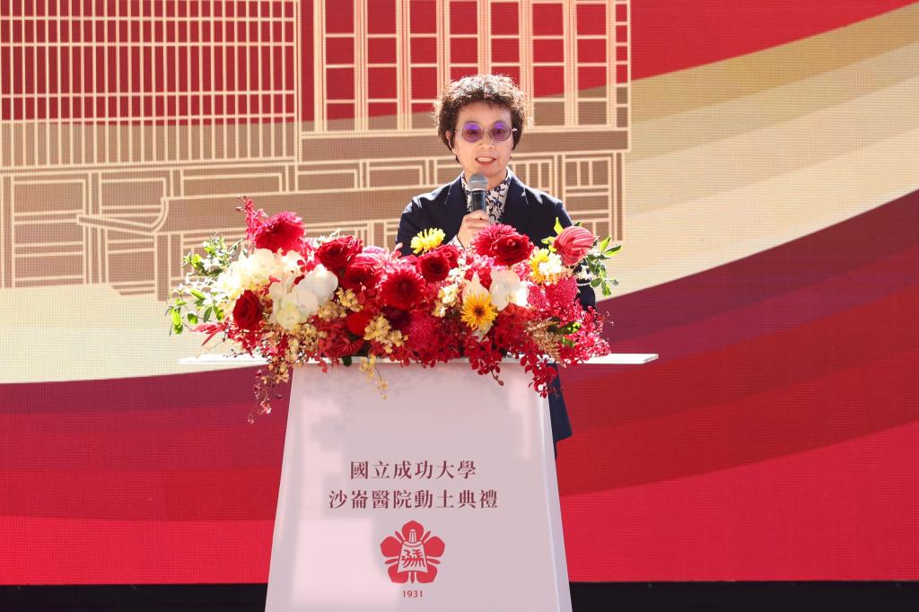 臺南市副市長趙卿惠代表黃偉哲市長出席致詞,分享市府團隊與成大團隊共同規劃韌性醫院小故事,相當肯定成大持續不斷的努力。趙卿惠提到,沙崙明日未來城規劃自賴總統擔任臺南市長期間開始,這項建設不僅造福新豐地區或者北高雄民眾,同時也是國家醫療科技發展先導計畫,特別期待沙崙成為國家明日城市典範。