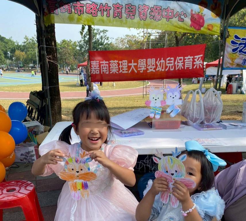 高雄路竹以番茄、虱目魚、花椰菜及雞蛋這「路竹四寶」聞名,為讓孩子們從小建立與土地連結,嘉藥幼保系今年特別設計互動遊戲攤位,邀請家長陪同小朋友製作「鹿竹形象紙偶」DIY,小朋友在象徵路竹地名「鹿」與「竹」圖畫版上發揮創意塗色,並在家長協助下利用鉚釘組裝成可活動關節玩偶;透過「諧音梗」創意連結與動手做過程,不僅訓練孩子細膩動作,更將在地農產特色與社區意象深植孩童心中。