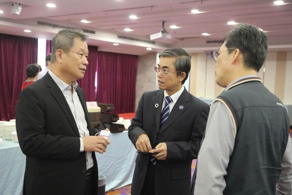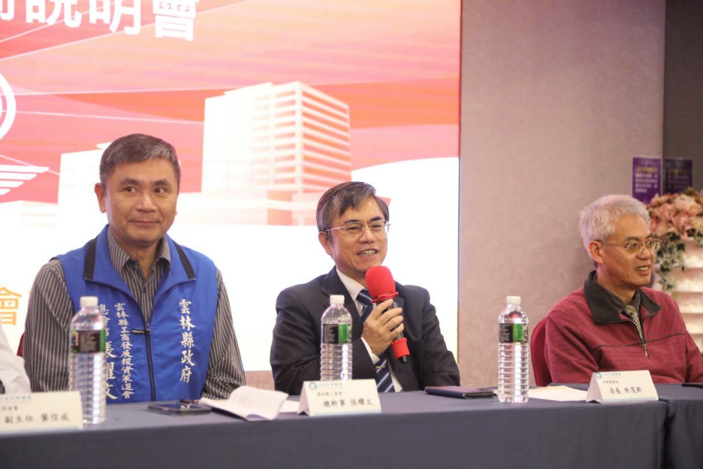 ▲中科管理局舉辦「中科虎尾園區廠商交流暨招商說明會」,中科管理局許茂新局長(中)、雲林縣工策會張耀文總幹事(左)、雲林科技大學鄭博文教授(右)對廠商提問及答詢仔細說明。(圖/中科管理局提供)