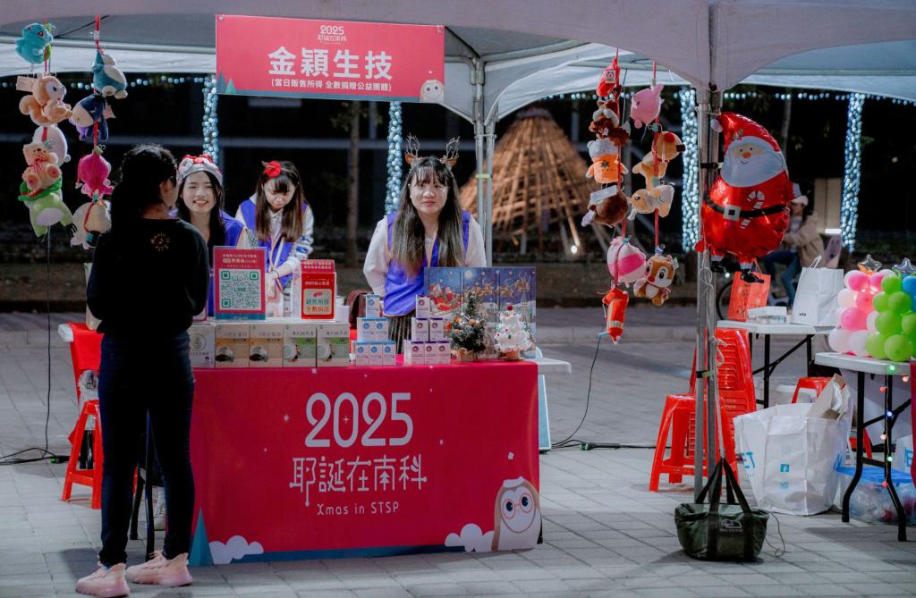 今年南科管理局持續與台灣世界展望會、財團法人天主教臺南市私立蘆葦啟智中心、臺南市政府社會局、高雄市政府社會局共同合作推動愛心公益,透過公私協力資源整合募集愛心捐款;另,南科管理局在耶誕晚會活動邀請群創光電公司、緯穎智造公司、金穎生物科技公司參與設置公益攤位,並捐出當日義賣所得響應公益。