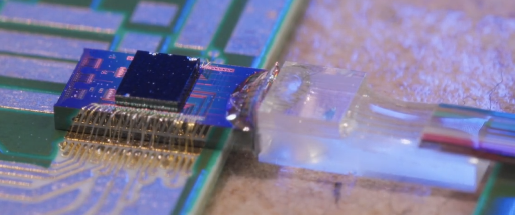 國研院半導體中心此次發表的「晶片級先進封裝研發平台」,展現具國際前瞻性的關鍵突破,創新提出去除基板的 CoCoB(Chip-on-Chip-on-Board)封裝架構。該技術省略傳統基板,直接將中介層晶片與電路板連接,其難度猶如將一片很大片的鋼化玻璃,放置於鋪滿鵝卵石的地面上,卻仍需確保每一個接觸點都能精準連接。半導體中心透過在每一微小連接球下方導入可流動介面材料,成功克服不平整問題,使所有連接點皆能可靠接合。