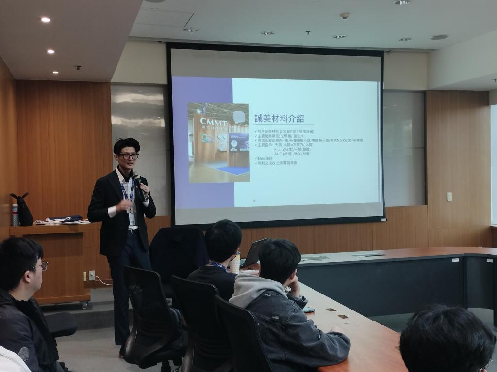 此次參訪誠美材料科技公司,由企業向師生公司與產線概況,產品為光電材料及元件,銷售範圍涵蓋液晶電視、行動裝置顯示器、桌上型顯示器等下游廠商,生產高度仰賴機器人系統整合的智慧生產線,以維持產品品質及提升生產能量,因此對於智慧製造人才需求殷切。