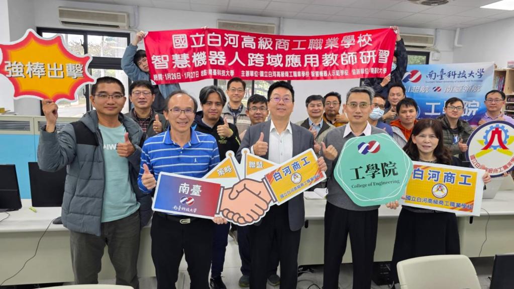 【勁報記者于郁金/臺南報導】為協助基層技職教育精準對接國家產業發展,南臺科技大學與國立白河高級商工職業學校於近日連2天盛大舉辦「智慧機器人跨域應用教師研習」;本次活動是雙方攜手推動「智慧機器人增能課程」重要環節,旨在因應行政院於2025年5月正式拍板「智慧機器人產業聚落」落腳臺南柳營後,帶動區域產業轉型所需龐大高階人才需求;透過南臺科大「實作型 AI 科技大學」研發能量,大手攜小手引領高職教師掌握前瞻技術,為即將到來柳營智慧產業新時代預備頂尖師資。