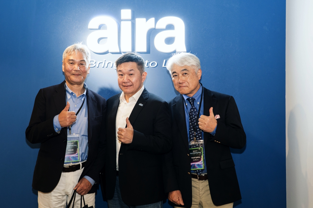 ▲台灣AI辨識與智慧應用方案供應大廠Aira 城智科技產業交流活動, 逾80 位來自日本、新加坡、香港、菲律賓等的國際夥伴共襄盛舉。圖左起:高崎、李方奇執行長住谷健社長。(圖/城智科技提供)
