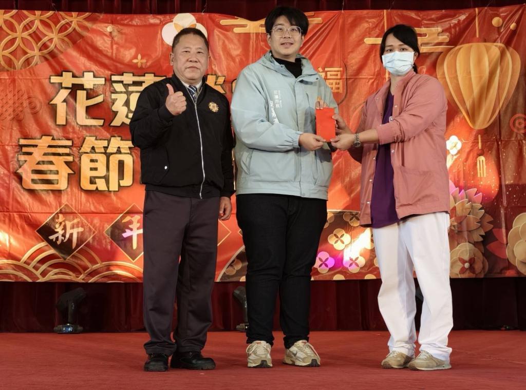 花蓮市長魏嘉彥特地蒞臨活動現場,除提供豐富摸彩品外,更現場加碼抽出電視一台,並暖心致贈加菜金6,000元給榮家養護堂長輩,購買春節慰問品、營養品、點心、飲料等,增添濃厚新春喜氣。