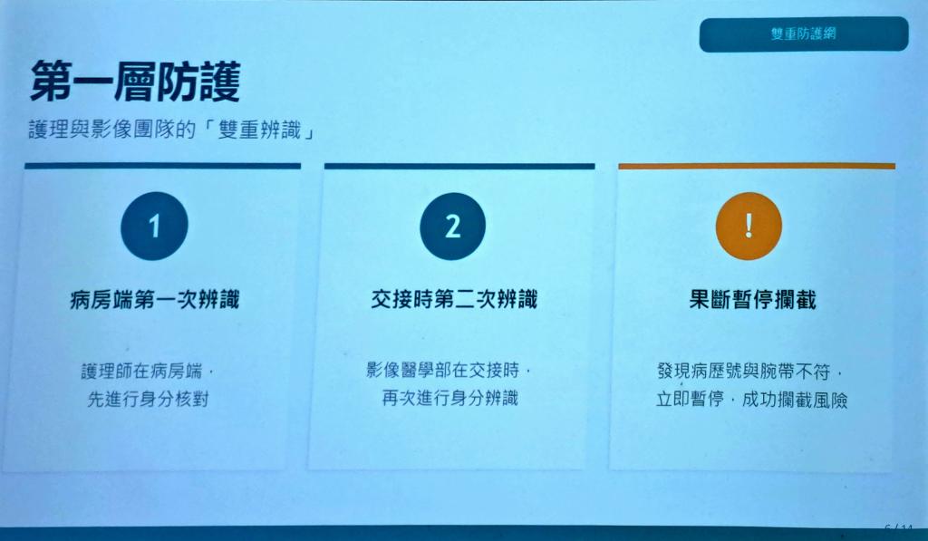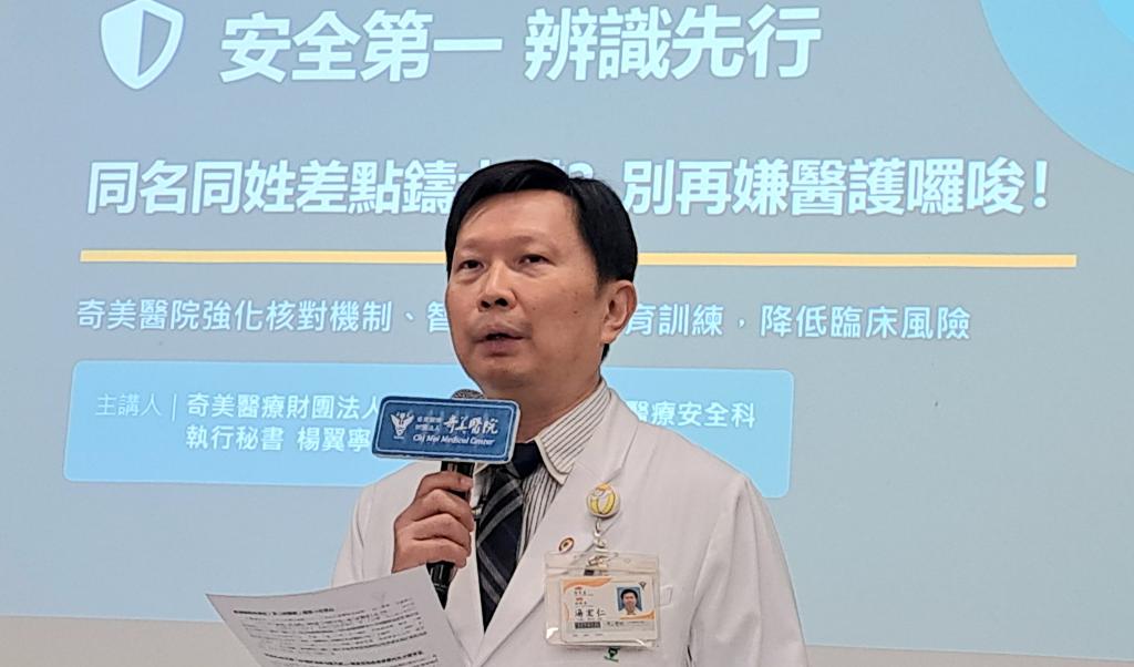 奇美醫院品質管理部醫療安全科執行秘書楊翼寧指出,為落實「安全第一」,奇美醫療財團法人奇美醫院也同步優化腕帶管理、嚴謹規範病人轉送時的核對流程,及在臨床電腦系統中加入智慧提醒機制;同時,透過加強同仁教育訓練,將「辨識先行」內化為每位同仁直覺反應;奇美醫院深耕臺南多年,深知醫療品質與在地信任息息相關,透過制度與技術雙管齊下,要讓臺南鄉親享有國際級就醫安全感。