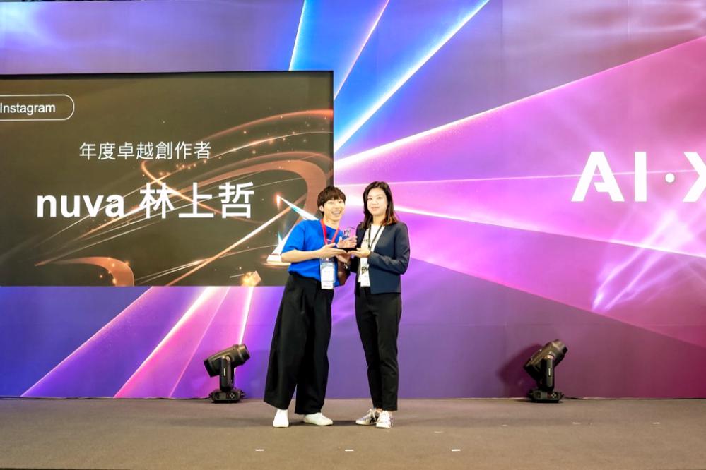 ▲頒獎人大數據股份有限公司營運長蔣志薇(右)頒發「Instagram年度卓越創作者」,由 nuva 林上哲(左)獲獎。(圖/IC之音提供)