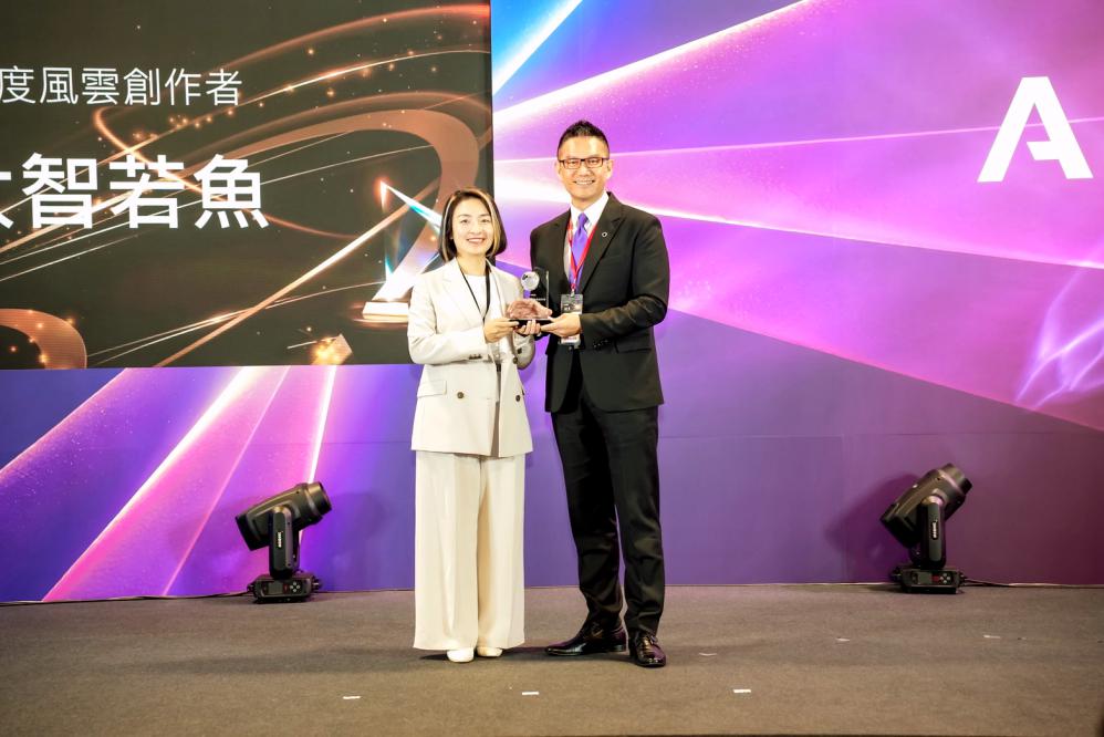 ▲DIGITIMES 集團總經理蘇育正(右)頒發「評審團獎—潛力新星創作者」,由《大智若魚》主持人胡筱薇(左)獲獎。(圖/IC之音提供)